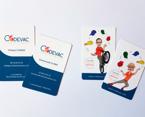 Création d’un logo et d’une carte de visite 2 volets avec impression dorure à chaud.